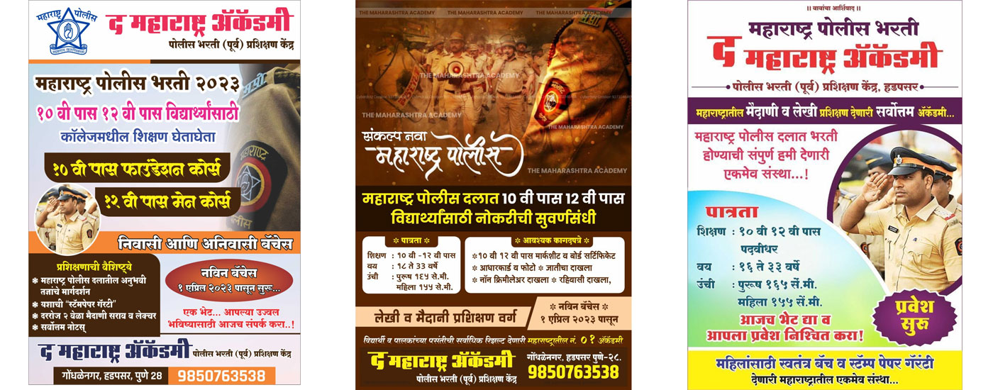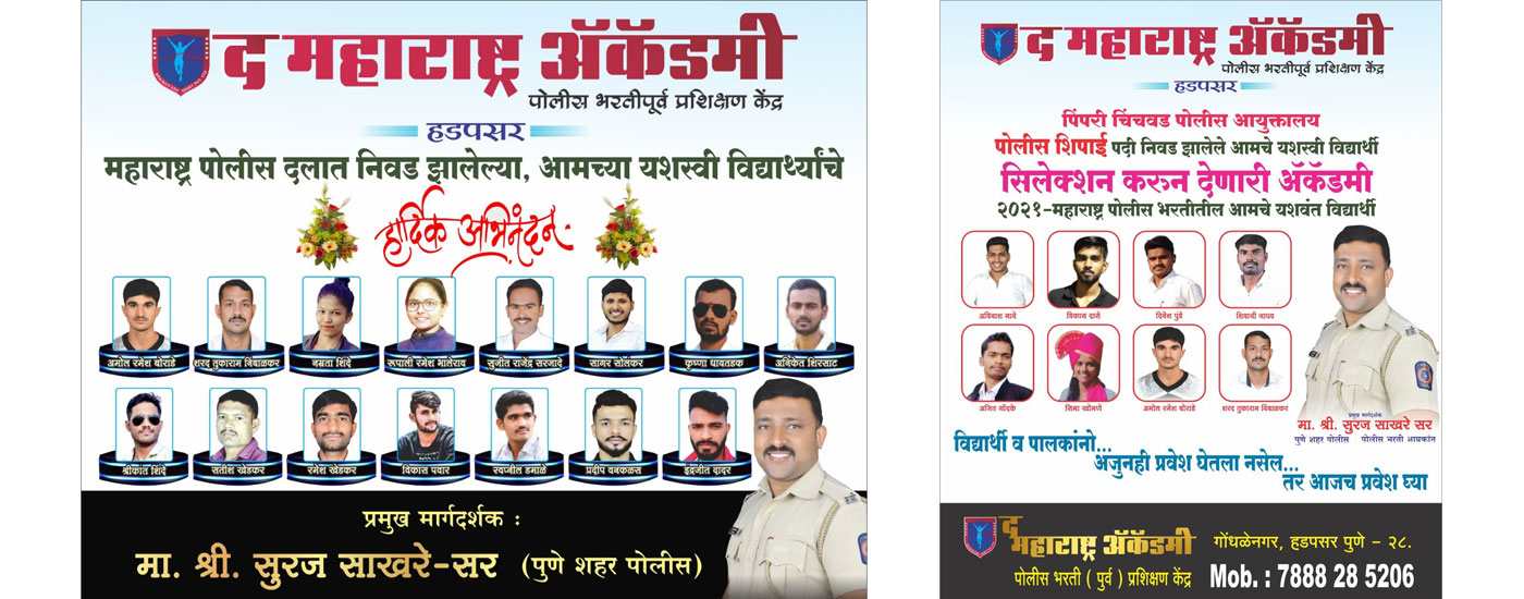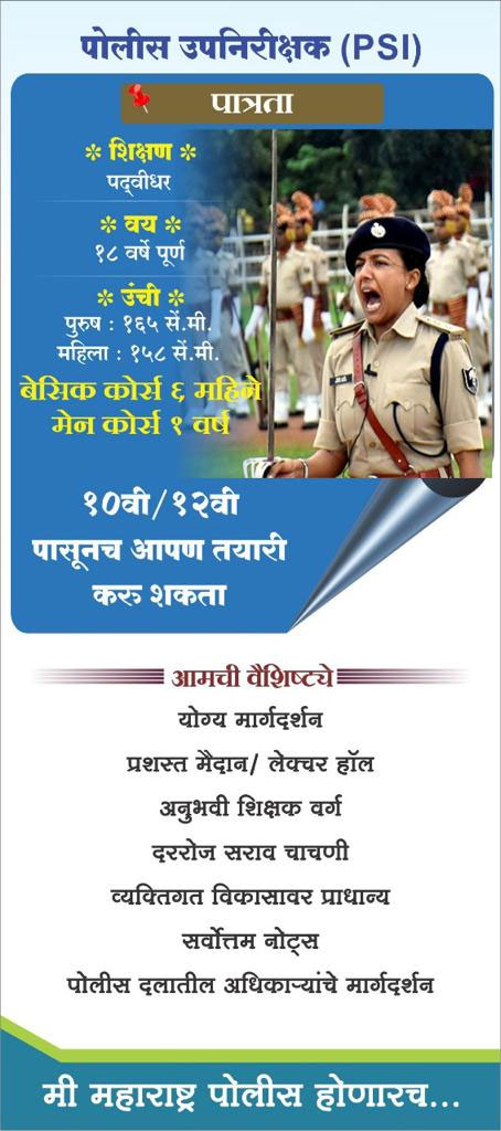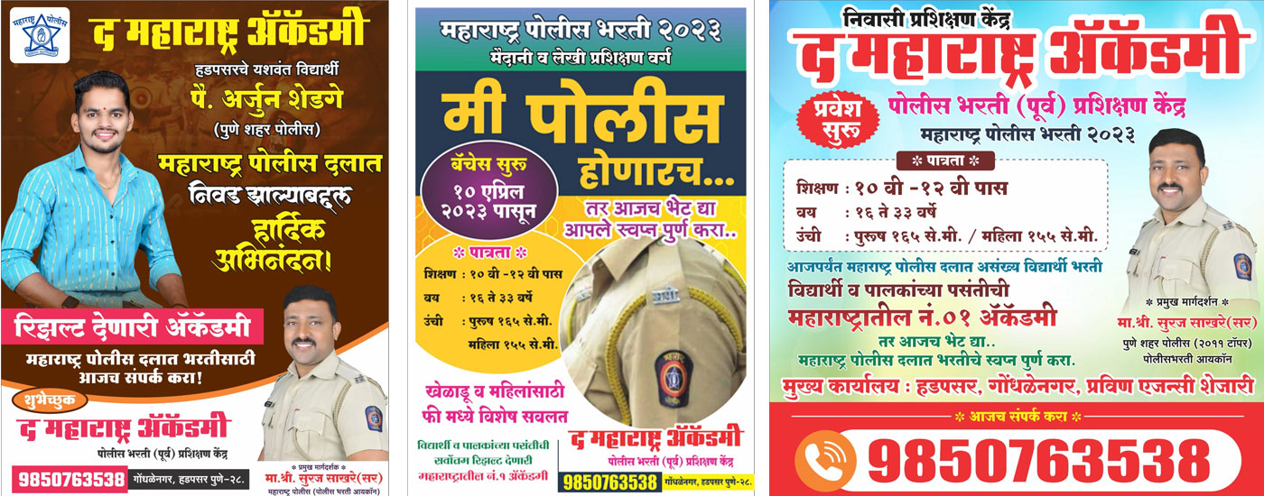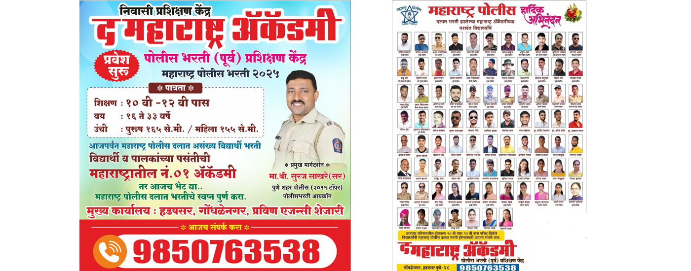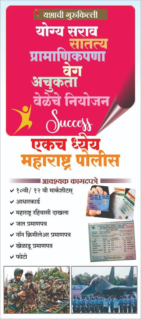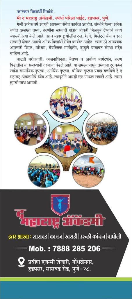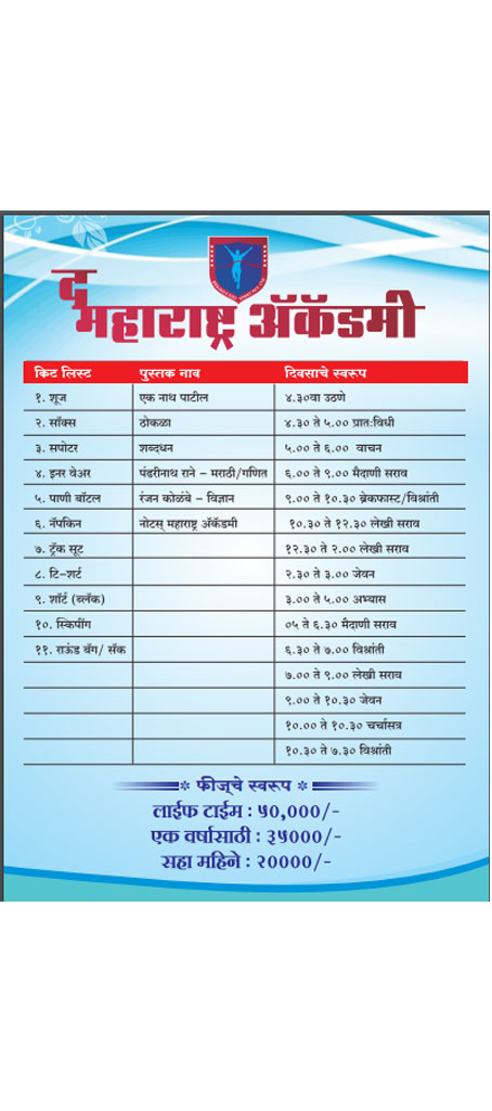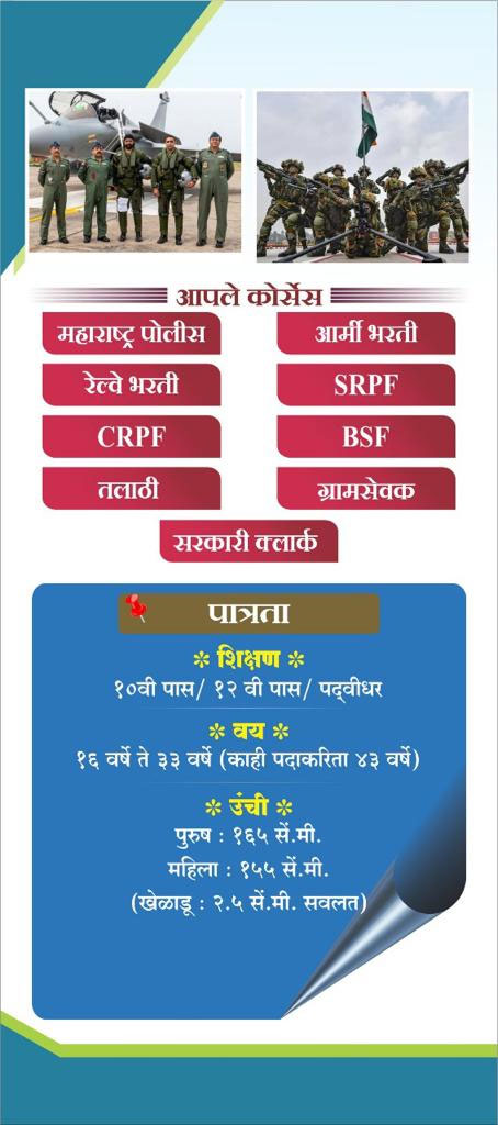 The Maharashtra Academy is one of the best academy which provides pre-recruitement trainging for the police, army, railway, MSF, Firebrigade, S.R.P.F., C.R.P.F., B.S.F., C.I.S.F. recruitment.